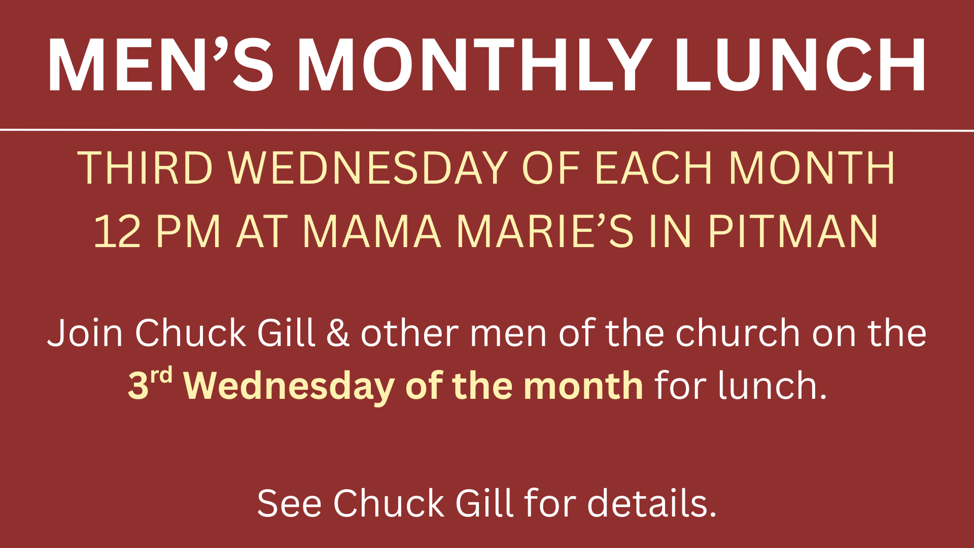 Adult Sunday School for both Men & Women begin at 9 AM