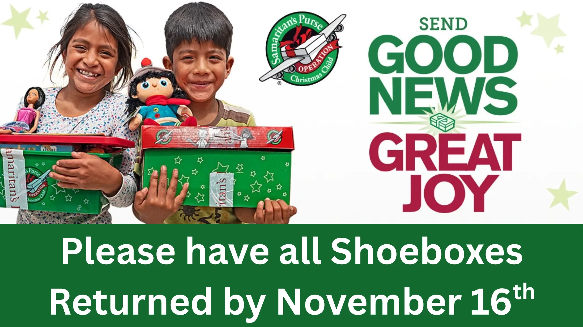 Reminder! Shoeboxes & Thanksgiving Items are due back this Sunday, Nov. 16th